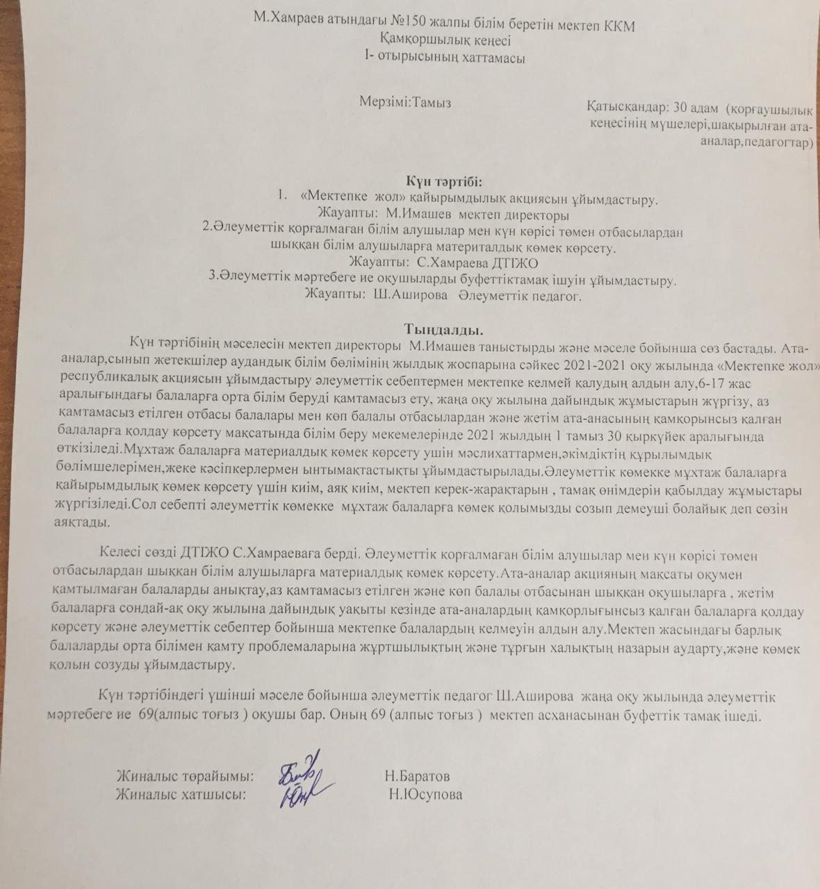 КГУ "Общеобразовательная школа №150 им.М.Хамраева