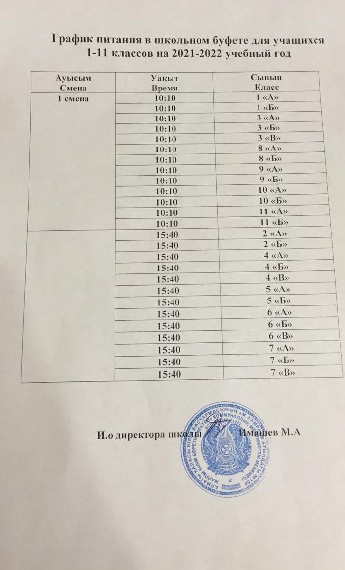 График дежурства учителей (в столовой) на 2021-2022 уч.год