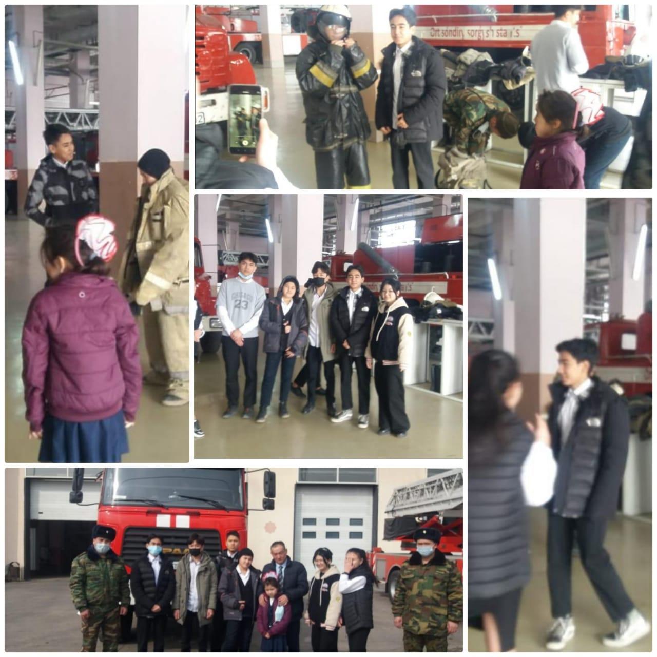 Алатау аудандық өрт сөндіру бөлімінің "Ашық есік" күнін өткізуіне орай мектебіміздің 10- сынып оқушылары өрт сөндіру бөлімін көріп қайтты. Оқушыларды бөлім қызметкері күтіп алып түсіндіру жұмыстарын жүргізді. Мектеп оқушылары арнайы өрт техникаларымен және авариялық-құтқару жарақтарымен таныстырылды. Оқушылар күн сайын өз өмірін қатерге тігіп адамдар мен тұрғын үйлерді оттан, төтенше жағдайлардан құтқарып жүрген өрт сөндірушілер мен құтқарушылардың жұмысымен танысуға мүмкіндік алды. Қатысушылар белсенділік танытып, сұрақтарын қойып, қызығушылық білдірді.