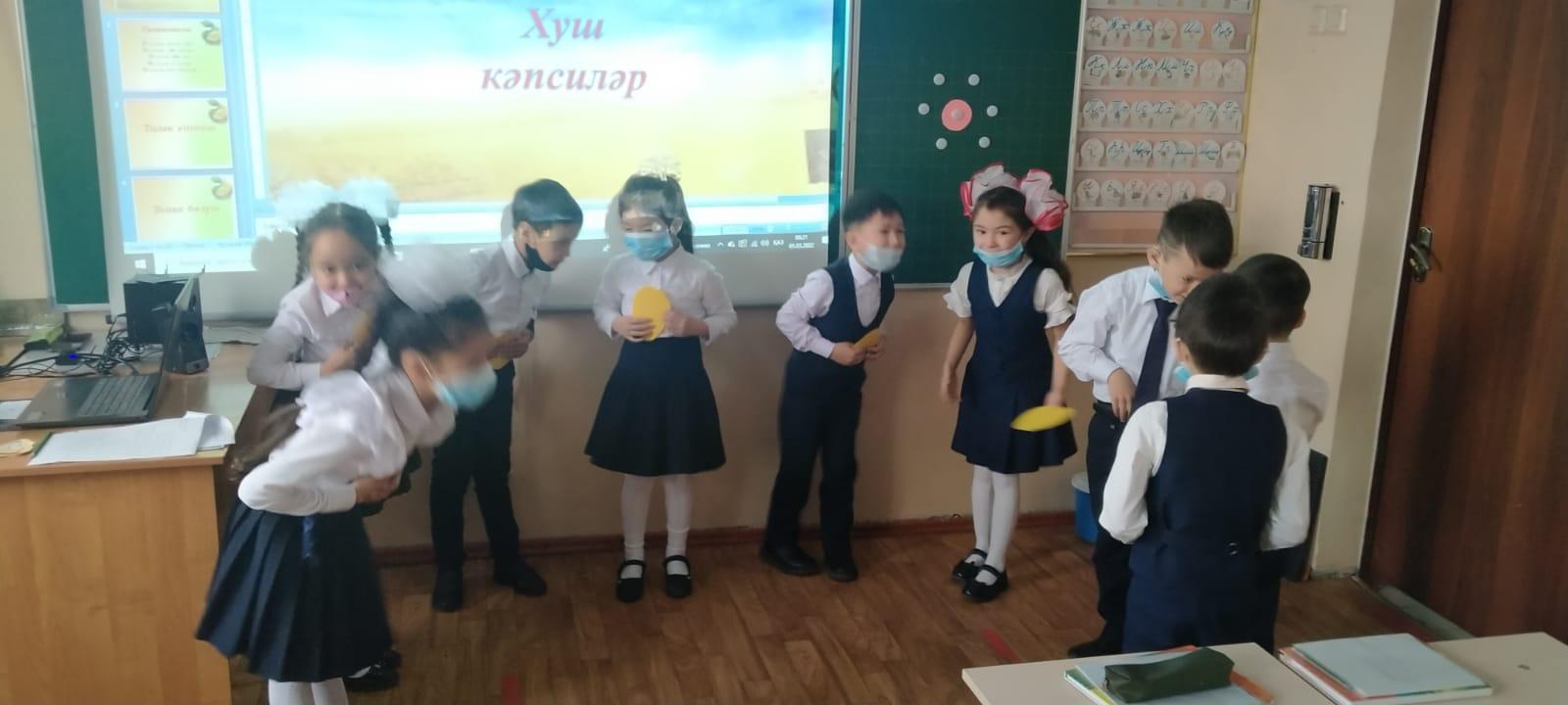 Мектебімізде бастауыш сынып мұғалімі, педагог-сарапшы Каримова Гулякиз Масимовна ұйғыр тілі сабағынан «Мәтін вә жүмлә» тақырыбында 1«Б» сыныбына ашық сабақ өткізді. Сабақ барысында әр тапсырма сайын оқушыларға мадақтау арқылы кері байланыс берілді. Оқушылар берілген тапсырмаларды белсенді түрде орындап, өз қабілеттерін көрсетті. Мұғалім жеке, топтық жұмыстарын ұйымдастыру арқылы өз мақсатына жете білді.