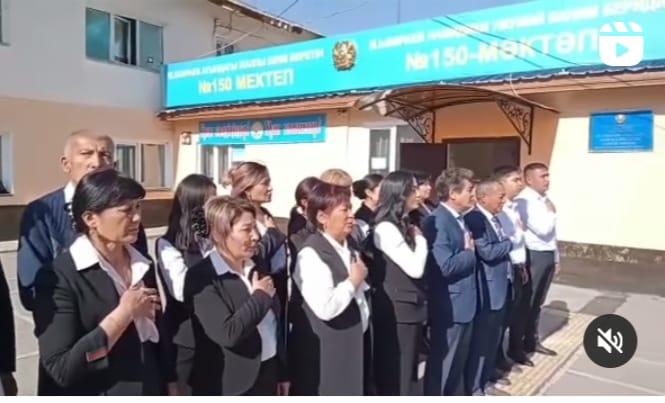 “Республика күніне” орай М.Хамраев атындағы 150 ЖББ мектеп ұжымы мемлекеттік әнұранды орындады. Ұстаздардың Отанға деген сүйіспеншілігі жоғары дәрежеде екені айқындалды. Сондай-ақ жас ұрпаққа сапалы білім, патриоттық рухта тәрбие берудің маңыздылығы ұстаздарға жүктелгені анық білінді.