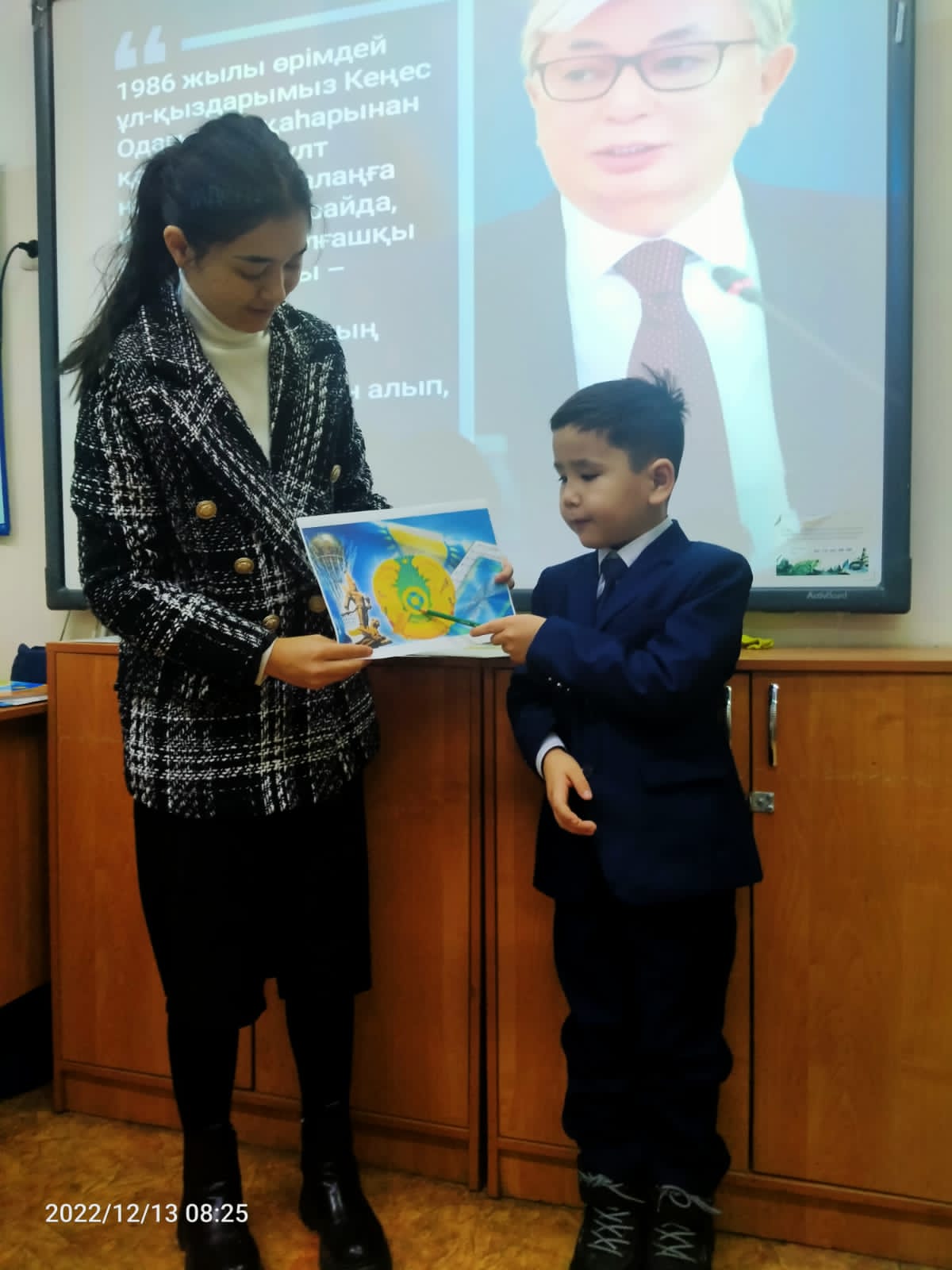 М.Хамраев атындағы 150 ЖББ мектепте желтоқсан айының 13-і “Тәуелсіз Қазақстан” тақырыбында 1 “В” сынып оқушыларымен сынып сағаты өткізілді. Сынып сағатының мақсаты: Оқушыларға 1986 жылы болған 16 желтоқсан оқиғасы туралы түсінік беру. Қазақстан тарихын жетік білуіне ықпал жасау. Патриоттық тәрбие беру.
