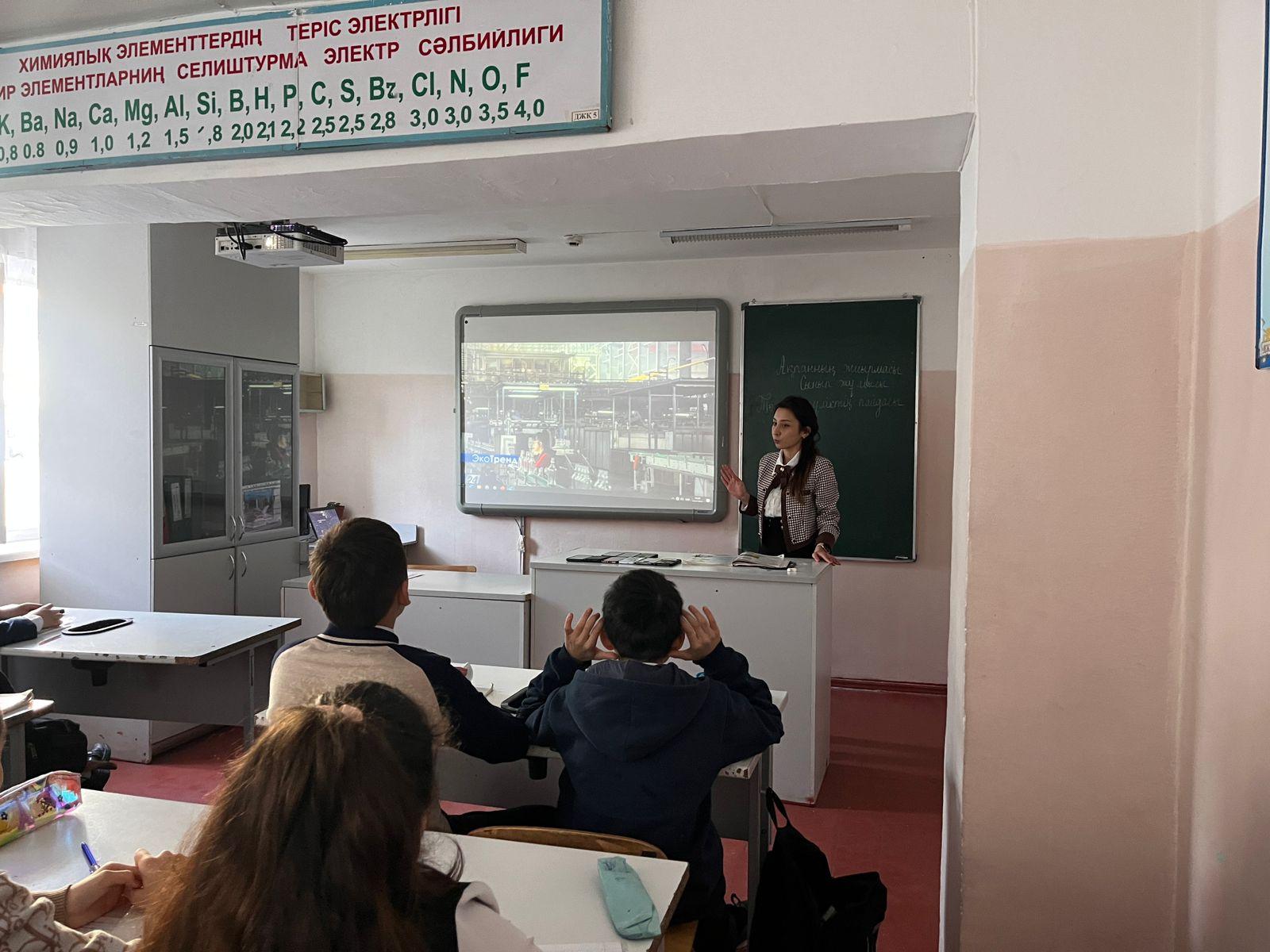 М.Хамраев атындағы 150 ЖББ мектеп тәлімгері Хашимжан Р.А. 7 сынып оқушыларымен “Қоқысты қайта өңдеу мүмкін бе?” тақырыбында танымдық сабақ жүргізді. Мақсаты: