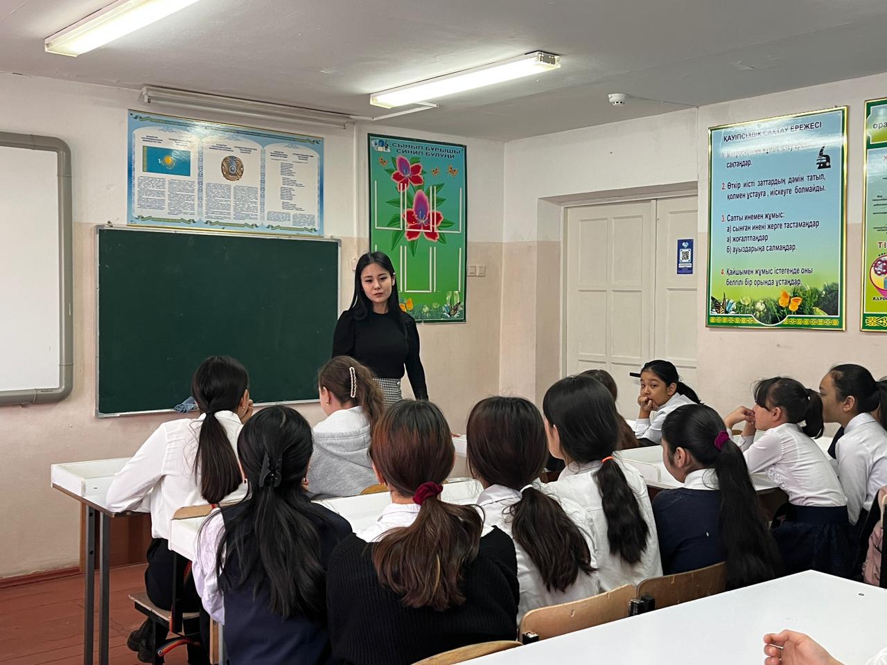 Директордың тәрбие ісі жөніндегі орынбасары Хамраева С.Н., мектеп психологі Исмаилова Г.А. қатысуымен өткізілген бұл жиналыста қыздардың тәртібі, сабаққа қатысуы, мектеп формасы, жеке бас гигиенасы, буллинг, сенім жәшігі және сенім телефондары жайлы айтылды. Жиналыс сырласу түрінде өтіп, оқушылар жақсы көңіл-күймен тарады.