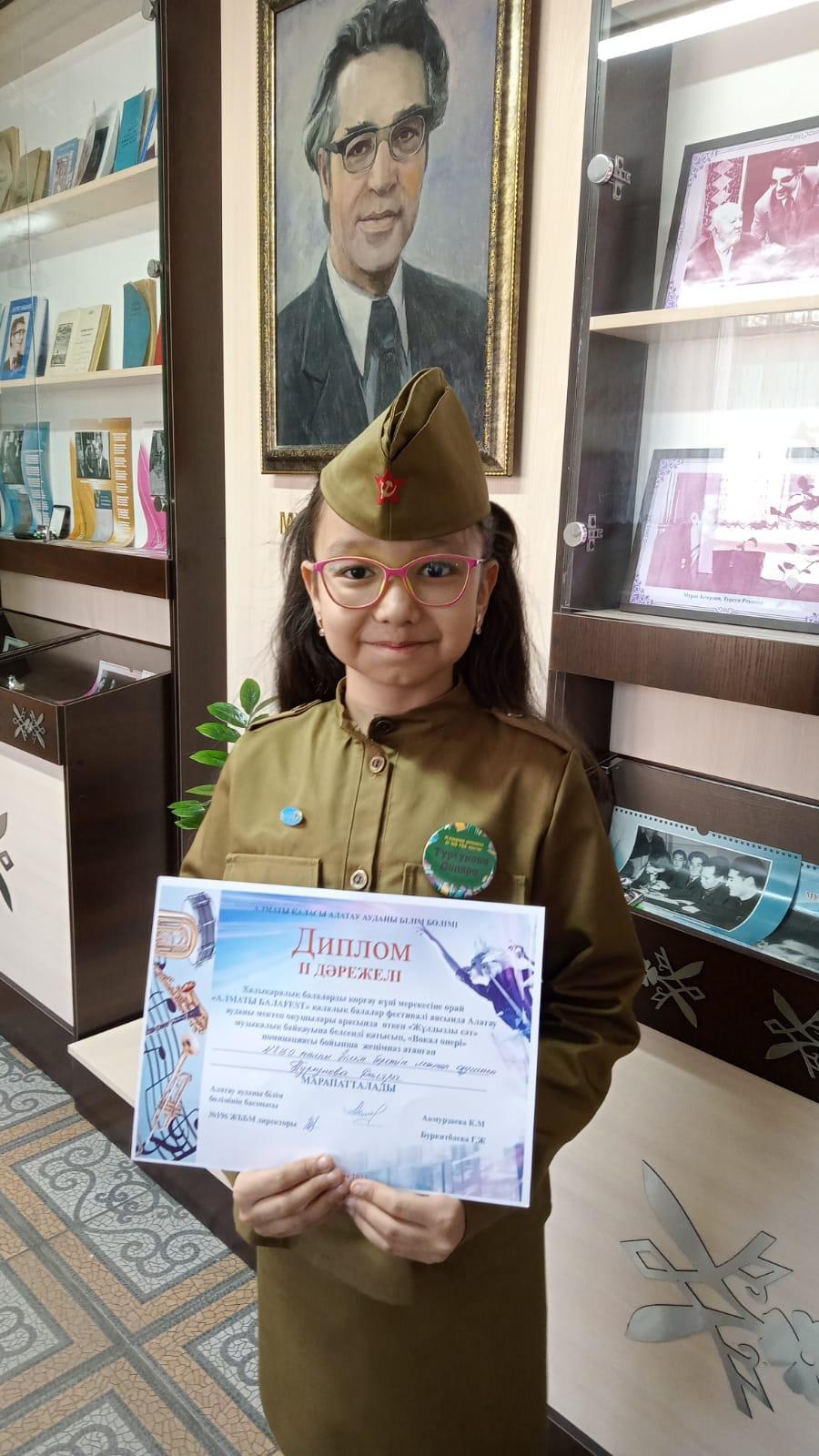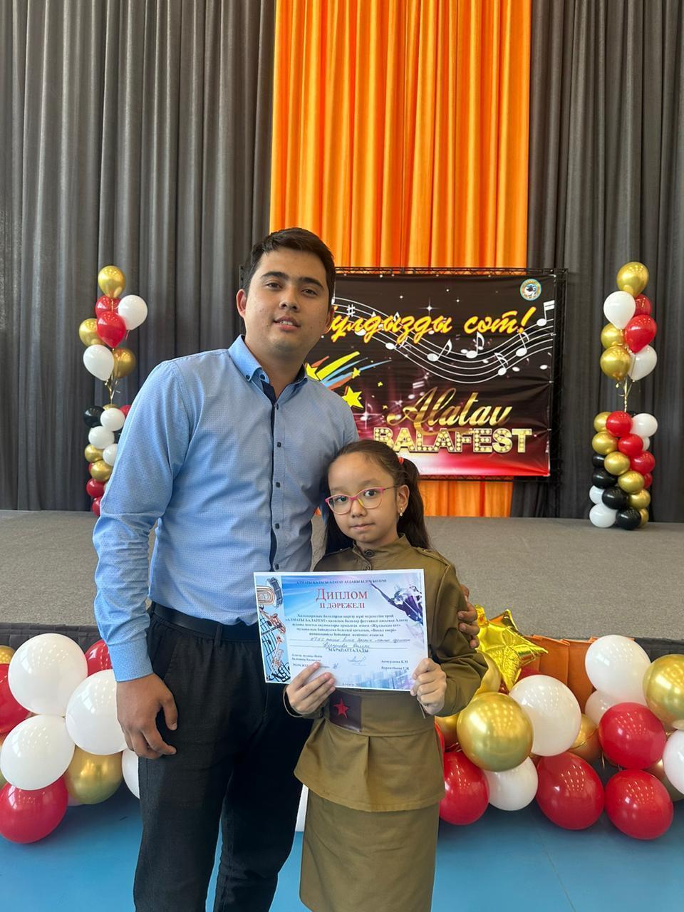 Халықаралық балаларды қорғау күні мерекесіне орай "АЛМАТЫ БАЛАFEST" қалалық балалар фестивалі аясында Алатау ауданы мектеп оқушылары арасында өткен "Жұлдызды сәт" музыкалық байқауына М.Хамраев атындағы №150 ЖББ мектебінің 2"Б" сынып оқушысы Турсунова Диляра белсенді қатысып, "Вокал өнері" номинациясы бойынша жеңімпаз аталып, ІІ дәрежелі дипломмен марапатталды.