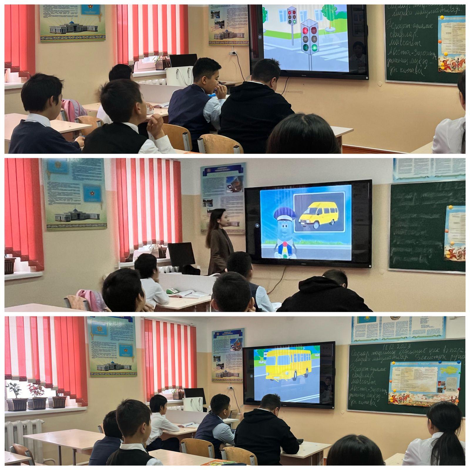 .Хамраев атындағы 150 ЖББ мектептің аға тәлімгері Хашимжан Р.А. 6 сынып оқушыларымен “Автобус және метромен жүру” тақырыбында әңгіме жүргізді. Мақсаты: Оқушылардың жолда жүру ережесі, жол белгілерінің түрлері жайында