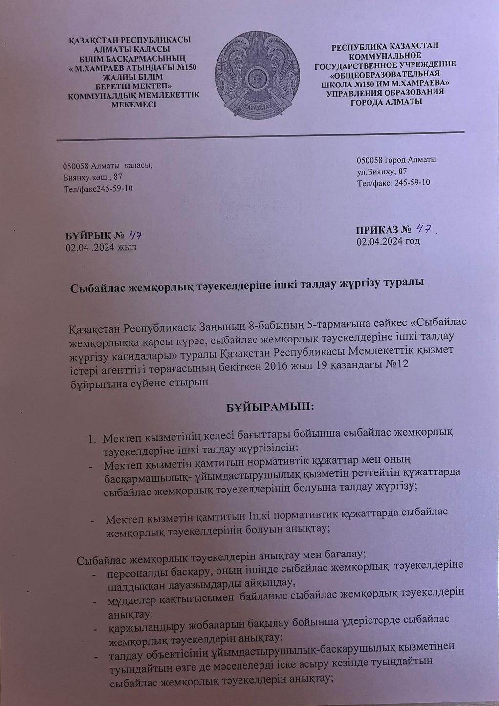02 сәуір 2024 0 Сыбайлас жемқорлық тәуекелдеріне ішкі талдау жүргізу туралы Осы беттің QR-коды:QR-код этой страницы: