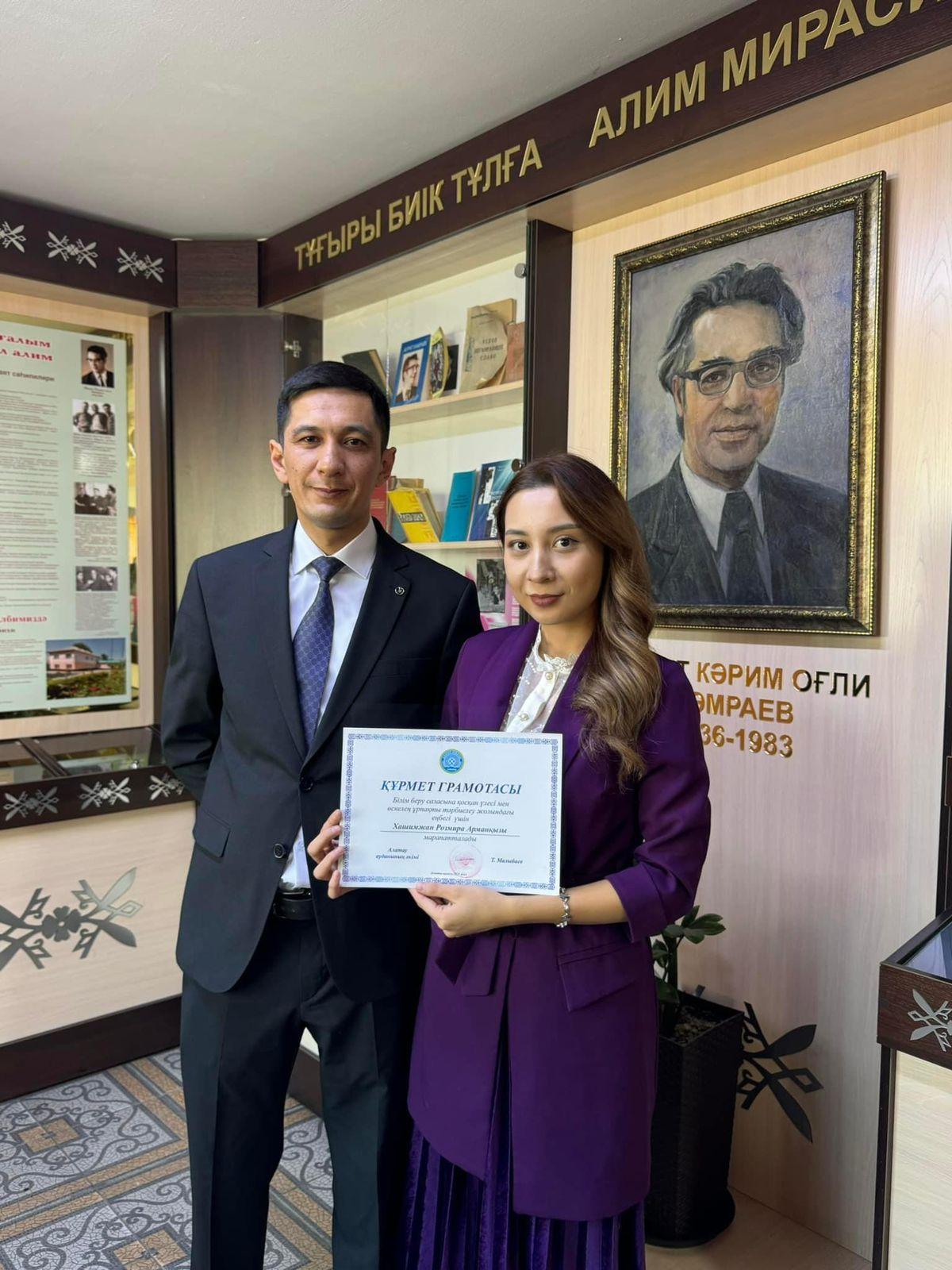 Қазақстан Республикасының оқу-ағарту министрі Ғ.Бейсембаев атынан алғыс хаттармен марапатталды.