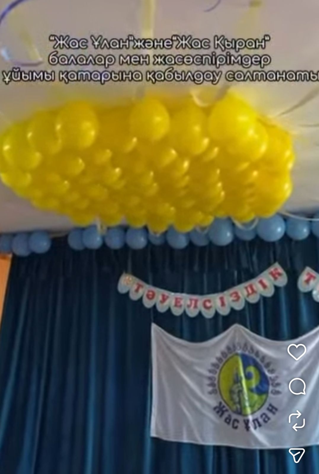 Мектебімізде Қазақстан Республикасының Тәуелсіздік күніне орай мерекелік концерт ұйымдастырылып, «Жас Ұлан», «Жас Қыран» балалар мен жасөспірімдер ұйымының қатарына қабылдау рәсімі өтті.