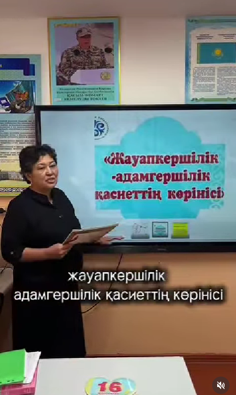11 «Б» классе в рамках программы «Адал азамат» прошёл классный час на тему «Ответственность — проявление нравственных качеств».