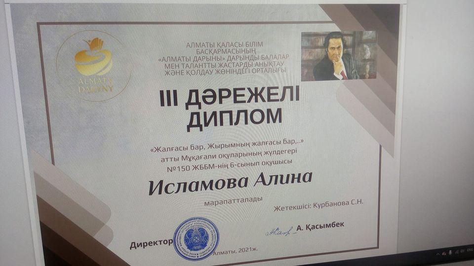 12 наурыз 2021 0 Награждена дипломом III степени и дипломом М. Исламова Алина, ученица 6 класса школы им. Хамраева, награждена дипломом III степени и дипломом по городу. Руководитель Курбанова С. Н. Поздравляем! Осы беттің QR-коды:QR-код этой страницы: