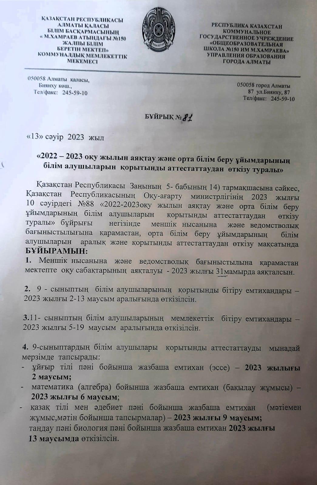 13 сәуір 2023 0 "2022-2023 оқу жылын аяқтау және орта білім беру ұйымдарының білім алушыларын қорытынды аттестаттаудан өткізу туралы" Осы беттің QR-коды:QR-код этой страницы: